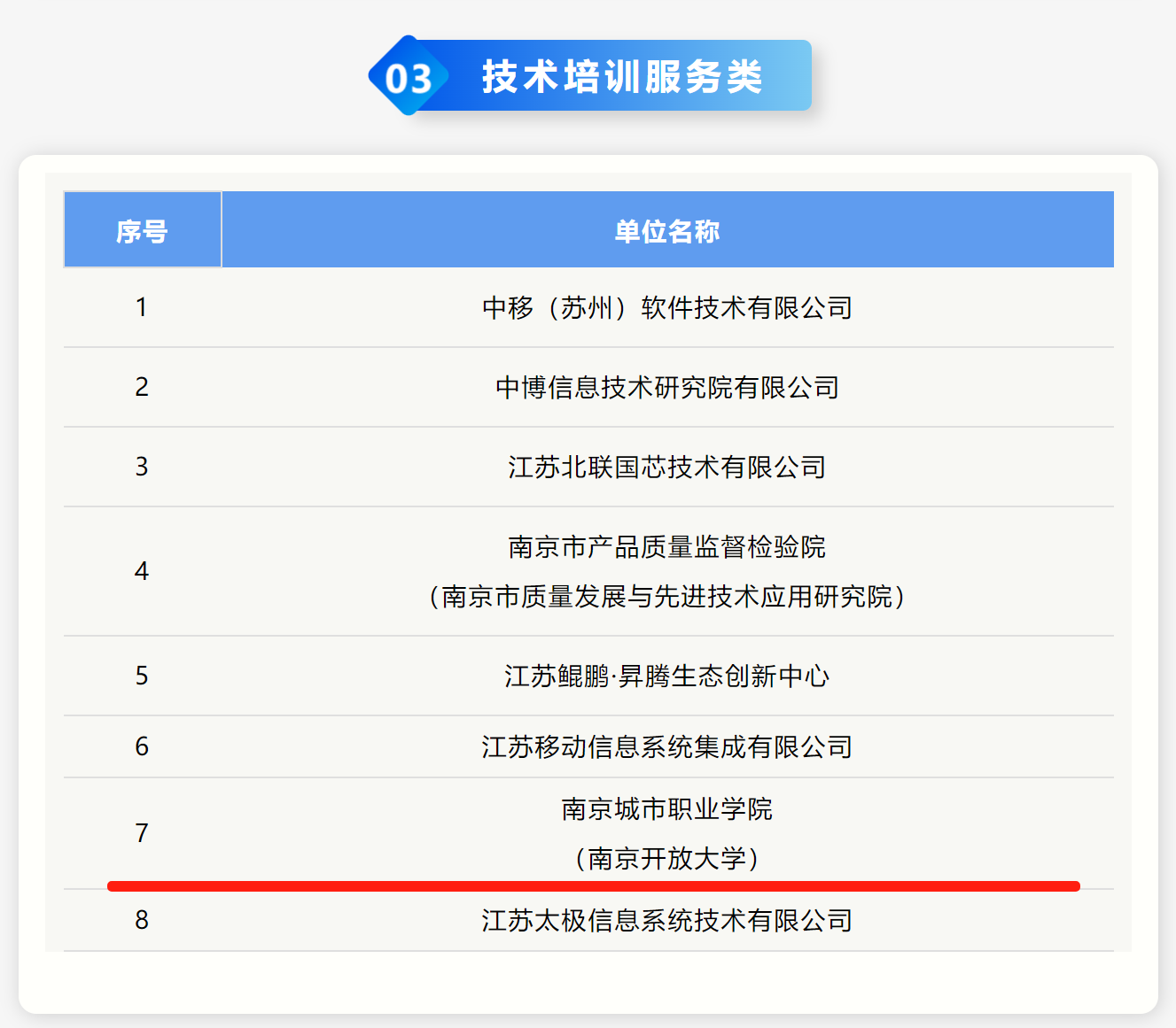 近日,江苏省信创工委会公布了2024年度江苏省信息技术应用创新优质服务机构资源池入围名单(第一批),经自主申报、形式审查和专家评审等环节,共选取6类共17家单位。问鼎官方app下载站成功入选“展示推广服务类”及“技术培训服务类”江苏省信创优质服务机构,是本次入选的唯一院校。