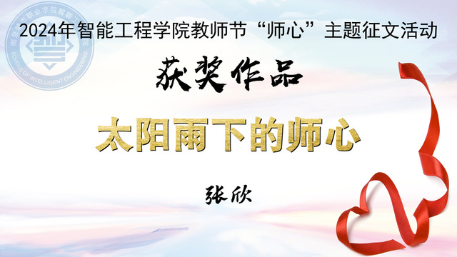 “太阳雨啊,是最美好的,有太阳有雨,有开心有难过,有酸又有甜。太阳雨下的师心啊,是每周三中午,男生宿舍一边打扫卫生,一边打赌,晚上我会去查哪几个宿舍;是凌晨三点,被黑车司机丢在路边,打电话给我,我一边通着电话跟他说话,一边开车飞驰在赶过去接他的路上;是年三十,我做的十几个菜,丢下一大家子亲戚送菜去学校给没回家的学生;是父母吵架动手去了警察局,孩子哭着给我打电话,我一边哄着吃奶的娃一边和他聊天,一聊就是一夜;是年复一年,终于,我从‘欣姐’变成了‘欣妈’!”