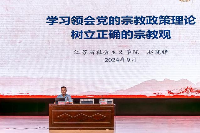 会上,江苏省社会主义学院教研室副主任、副研究员赵晓锋老师应邀为我院师生作了一场题为《学习领会党的宗教政策理论,树立正确宗教观》的专题讲座,通过深入浅出的讲解和生动的PPT展示,引导师生深入理解党的宗教政策,树立正确的宗教观念,促进了师生思想政治教育与理论素养的提升。
