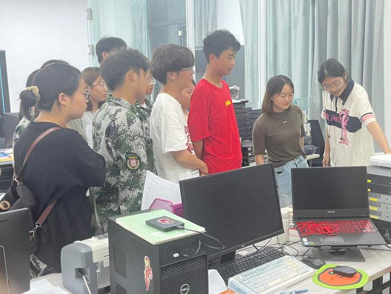 同学们怀揣着强烈的好奇与期待,在云网链协会工作人员的有序组织下,走进了勤学楼410、307、108室等备赛场地,实验室里摆放整齐的比赛设备,备赛的同学们都聚精会神投入备赛训练中。