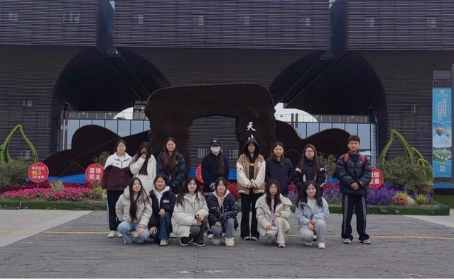 当天下午,师生们满怀期待地走进位于天生桥景区内的溧水区博物馆。一进入馆内,同学们便被琳琅满目的馆藏文物所吸引,立刻开启了一场深入的文化探索之旅。他们仔细端详每一件文物,认真聆听讲解员讲述文物背后的历史故事和风土人情,深刻感受着地区文化的源远流长和博大精深。尤其在地方民俗工艺展示区域,同学们对各种精湛的传统工艺表现出了浓厚的兴趣,他们驻足于工艺品前,热烈讨论工艺细节,对先辈们的智慧和技艺赞叹不已。