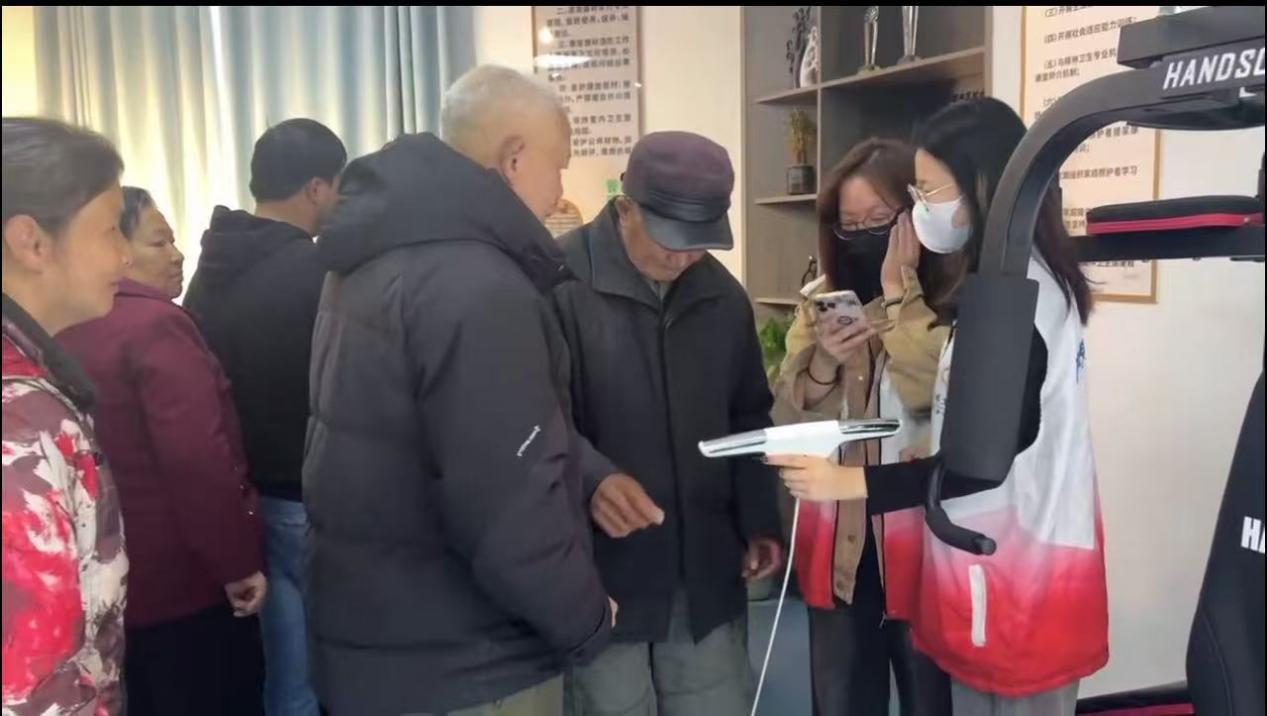 活动当日,志愿者们早早来到社区活动中心,摆放好体脂秤、红外智能健康检测仪等设备,并设置了引导标识。检测过程中,志愿者们耐心地协助每一位老人进行检测,详细询问老人的身体状况和生活习惯,同时用通俗易懂的语言为老人讲解检测结果,给出个性化的健康建议。对于患有慢性疾病的老人,志愿者们还特别提醒他们注意日常饮食和运动,定期进行健康检查。